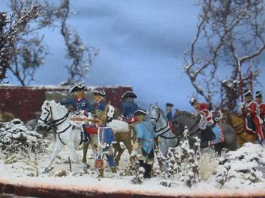 1. Friedrich weist dem General Zieten (2.Reg. Husaren) die Richtung zur Beobachtung,