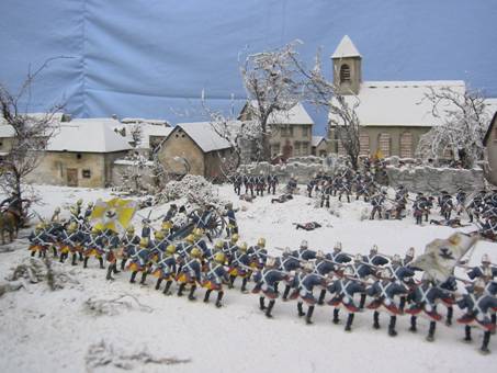 Das schwierigste am Anfang war das festlegen eines realisierbaren Raum- und Kopfzahlenverhältnisses, denn allein die Dorffront von ca. 2 km wäre in 1/72 tatsächlich ca. 30 m breit ausgefallen und allein über 100.000 Figuren zu bemalen ist schier unmöglich.