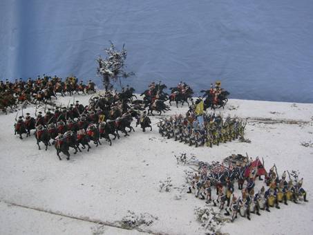 und (zeitlich tatsächlich etwas später gelegen) der Flankenangriff der österreichischen Kavallerie und dessen Abwehr durch die Preußen.