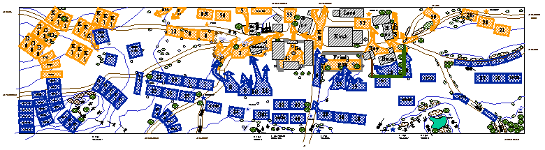Das Gelände und die Positionierungen der einzelnen Einheiten habe ich aus dem Werk des Großen Generalstabs (diesem ist eine Karte in 1/25000 beigefügt) entnommen und die unbekannteren österreichischen Positionen habe ich nach den zur Verfügung stehenden Informationen über Taktik und Gliederung der Armee so gut wie möglich selbst rekonstruiert.