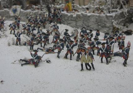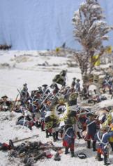 Die Anzahl der Bataillone und Schwadronen, sowie die schwere Artillerie mussten für eine realistische Darstellung stimmen. Da die Infanteriebataillone aus 8 Pelletons bestanden und in 3 Reihen gegliedert waren, wurde die Anzahl 24 Mann + Offizier + Trommler + Fahnenträger als Grundstein geboren. Alle anderen Truppenstärken habe ich dann im gleichen Verhältnis zur Realität angepasst, die Bataillonsartillerie musste entfallen.