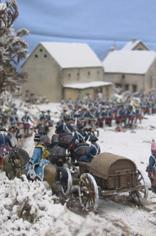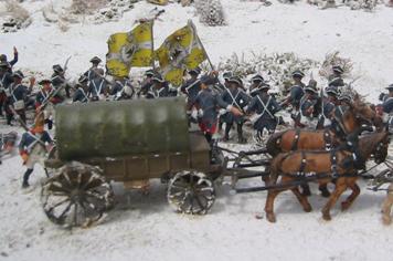 So entstanden sehr individuelle Lösungen, z.B. ein offener Munitionswagen beim Munitionsnachschub der Avantgarde und ein Schmiedewagen s.o.,